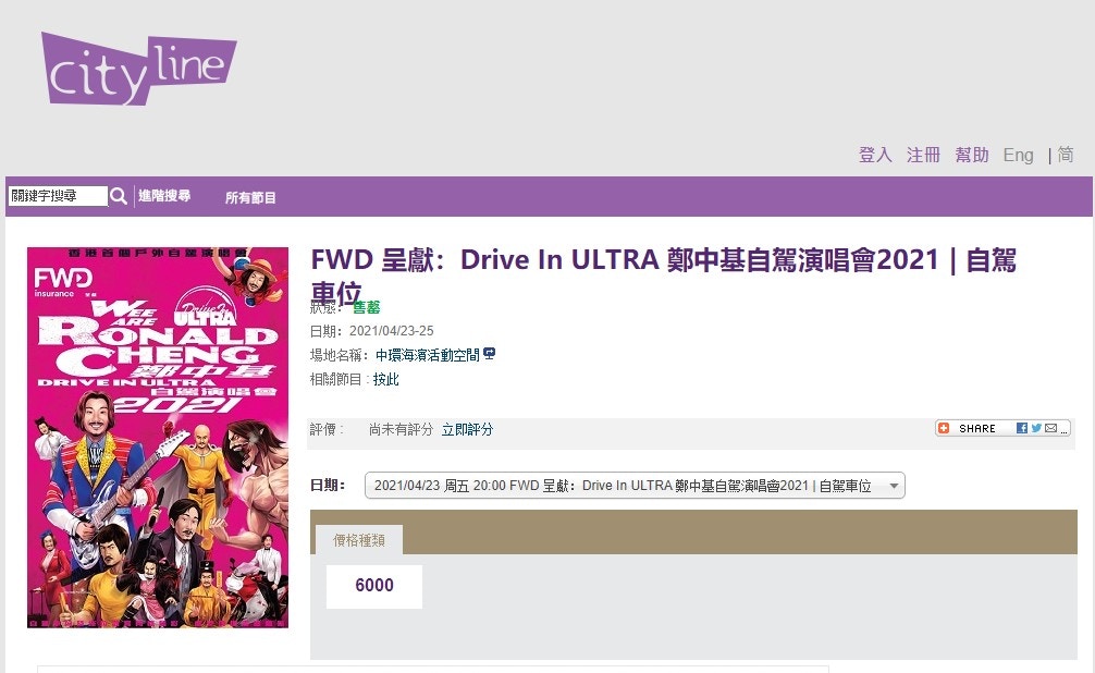 鄭中基演唱會2021 / éä¸åºæ¼"å"±æè»è¼å¥ç¥¨2å°æç«éå"®ç½å®£ä½å éä¸å ´ èææ¥å ± : 「wee are ronald cheng drive in ultra鄭中基自駕演唱會2021」於4月24及25日假中環海濱活動空間 演唱會海報日前已曝光,以鄭中基裝扮成各款動漫及電影角色的畫作,貫徹其玩味風格,也切合主題「人人都是鄭中基」。. 專輯介紹: 鄭中基 (ronald) 首個個人的演唱會於4月21及22日在香港紅館舉行,在開 show 之前,ronald 將唱盡 10 年的經歷,將 47 首精選作品輯錄成新曲+精選合輯《正宗 k》。 碟內更包括兩首 2006 年新作「三生有幸」和「美女與野獸」。 」 上天和父母給予的好歌聲, 創作人贈予的無數經典作品, 歌迷朋友多年來不離不棄的支持, 自己生為歌者對音樂不熄的熱情。 還有好多歌想要唱給你聽, 還有好多生命的故事要與你分享。 演出訊息: 日期及時間:2021年4月23日 (晚上8時)、25日 (晚上7:30分) drive in ultra是全港首個自駕汽車入場戶外演唱會品牌, 配合大型led wall及最大型演出舞台 所有2021年4月16日或之前購買的門票將安排本地郵寄 請選擇 展覽 音樂 戲劇 舞蹈 親子 演唱會 運動 講座 電影 其他 套票. 【郑中基】鄭中基 ronald cheng 1998聖誕沒有老公公 演唱會.