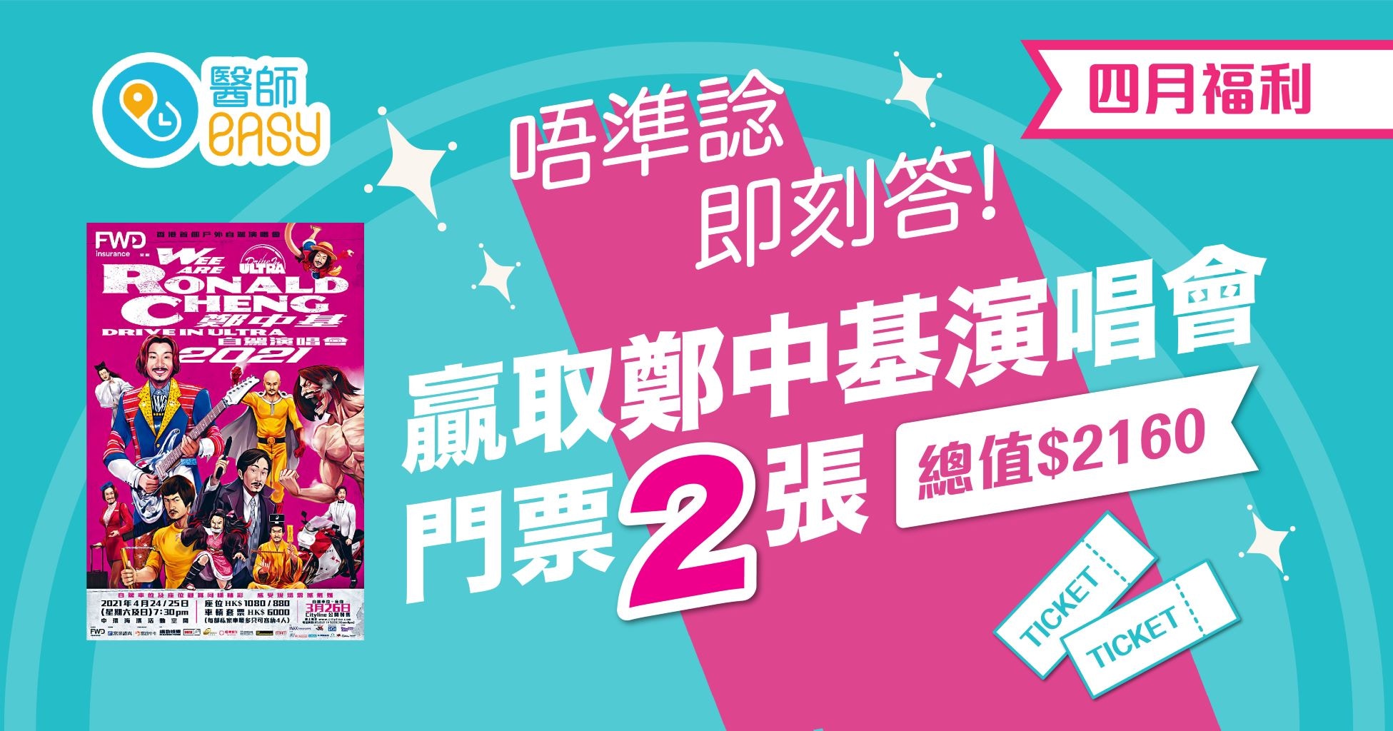 「wee are ronald cheng drive in ultra鄭中基自駕演唱會2021」於4月24及25日假中環海濱活動空間 演唱會海報日前已曝光,以鄭中基裝扮成各款動漫及電影角色的畫作,貫徹其玩味風格,也切合主題「人人都是鄭中基」。